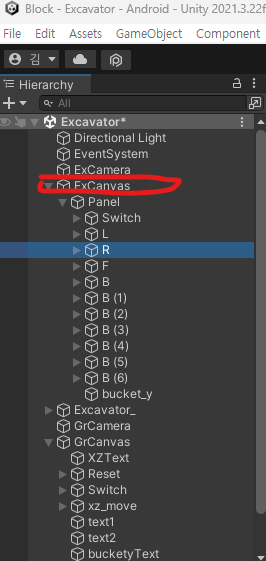 - 우선 외부에서 행동을 받을 버튼을 Canvas에 만들어준다.