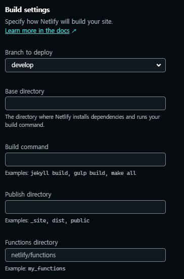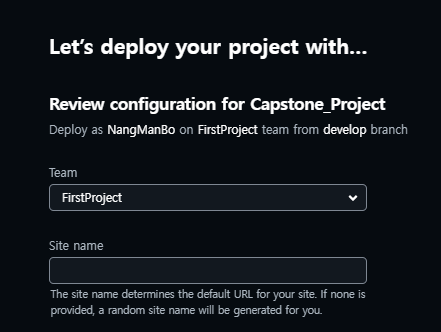 6. 저장소를 선택했다면 이제 site 이름과 build settings를 해줘야합니다.