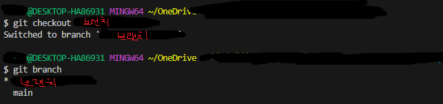 -> 브랜치 변경 성공했다면 *이 '브랜치 이름' 앞에 있을겁니다.