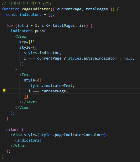 1. 현재 Page인디케이터에 대한 함수를 만들어 줍니다.