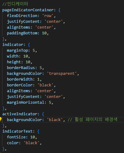 아래에 현 페이지에 대한 점만 색이 들어오게 끔 style들을 만들어 줍니다.